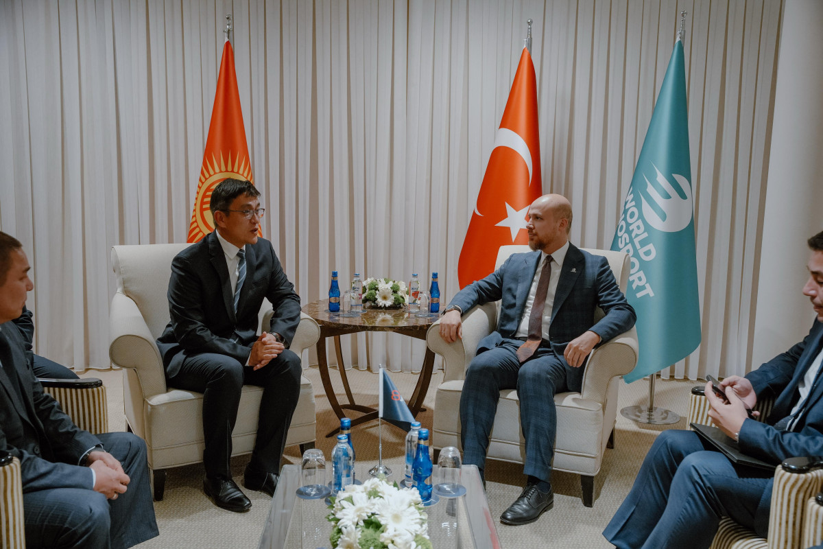 Министрлер кабинетинин төрагасынын орун басары Эдил Байсалов Анталияда өткөн VIII Эл аралык этноспорт форумунун алкагында Бүткүл дүйнөлүк этноспорт конфедерациясынын президенти Билал Эрдоган менен жолугушуу өткөрдү.