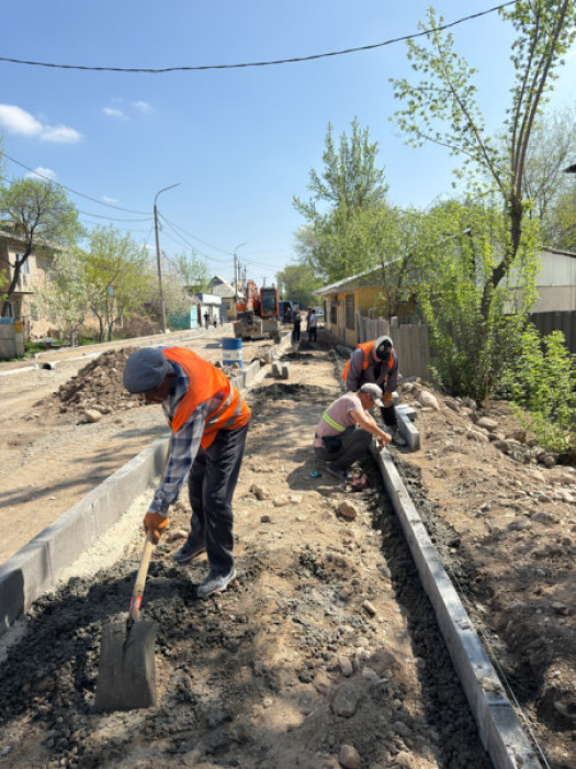 Учурда "Бишкекасфальтсервис" ишканасынын адистери тарабынан бордюрларды орнотуу, тротуарларды куруу жана ирригациялык тармактарды монтаждоо иштери жүргүзүлүп жатат.