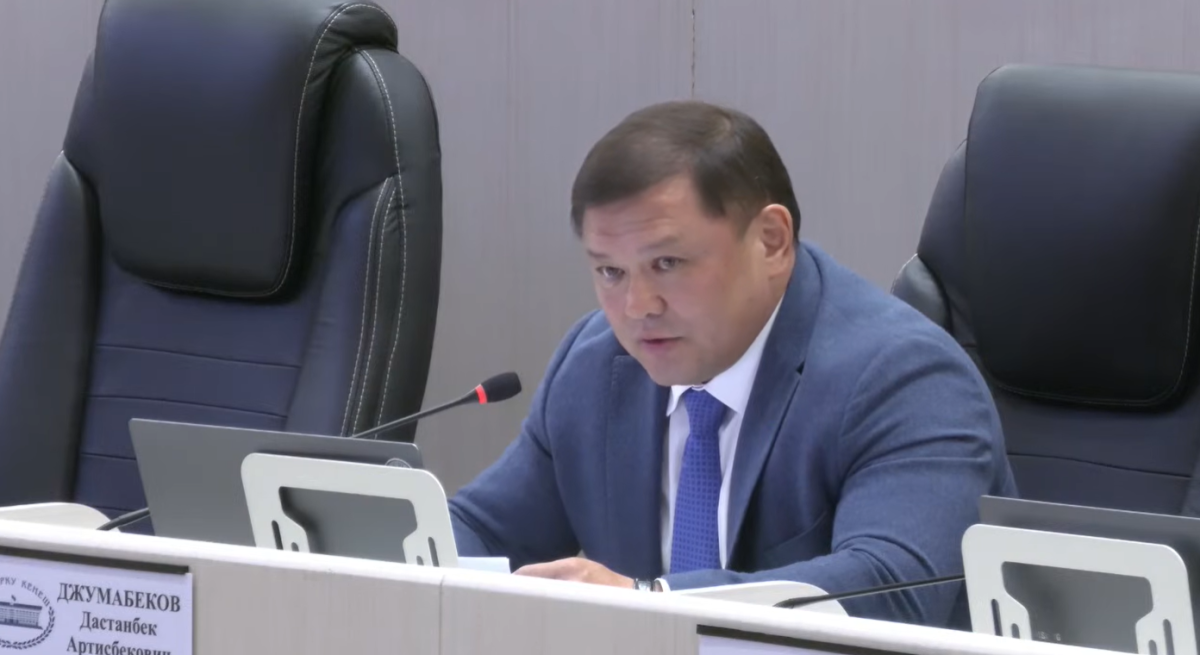 Жогорку Кеңештин депутаты Дастан Жумабеков парламент жыйынында мыйзам долбоорундагы эл аралык терминдердин маанилерине кызыкты.