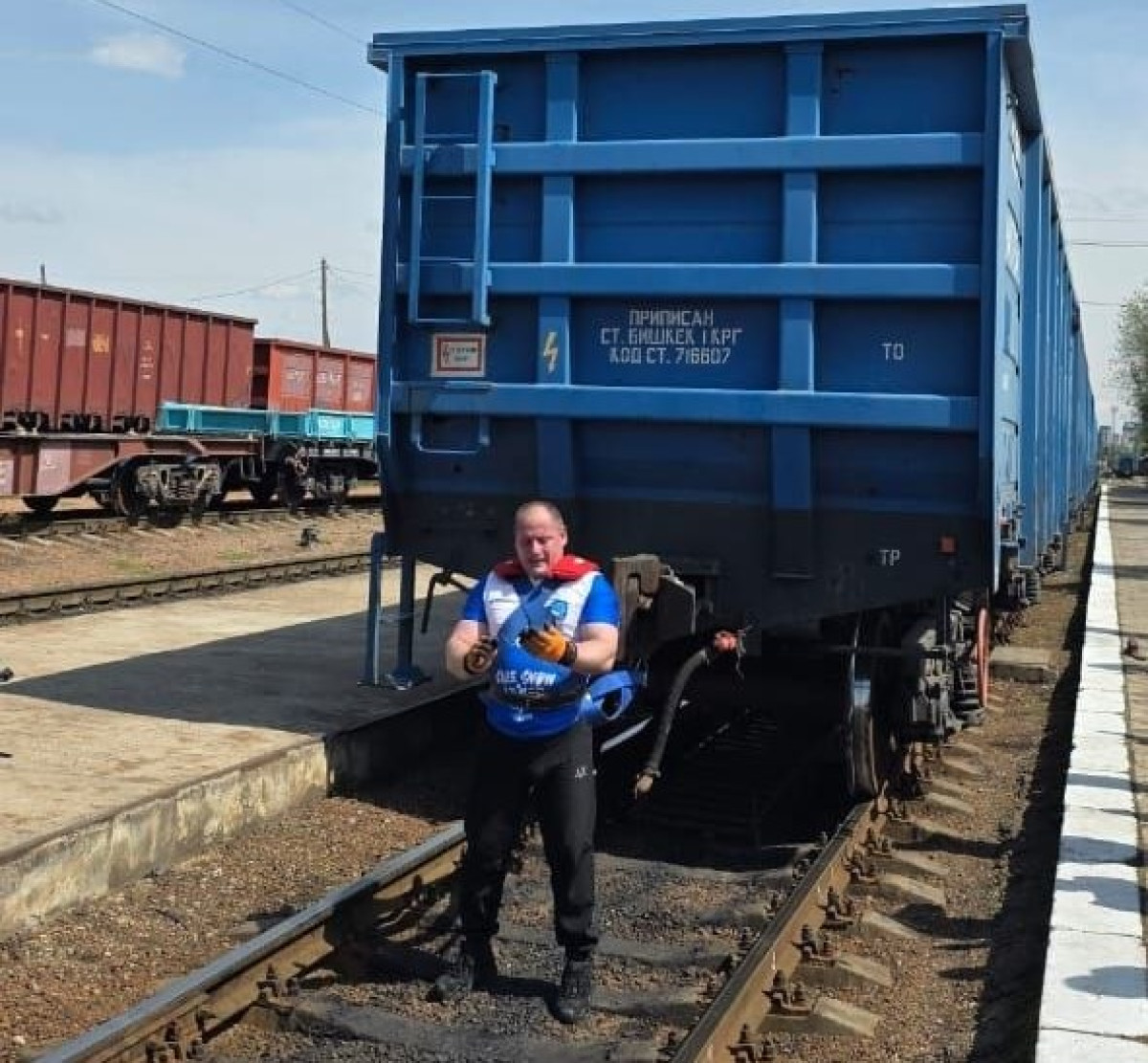 Бишкек-1 станциясынын аймагында атлет Алексей Тепляшин сегиз бош жүк вагонун ордунан жылдыра алды. Бул тууралуу 13-апрелде "Кыргыз темир жолу" ишканасынан билдиришти.