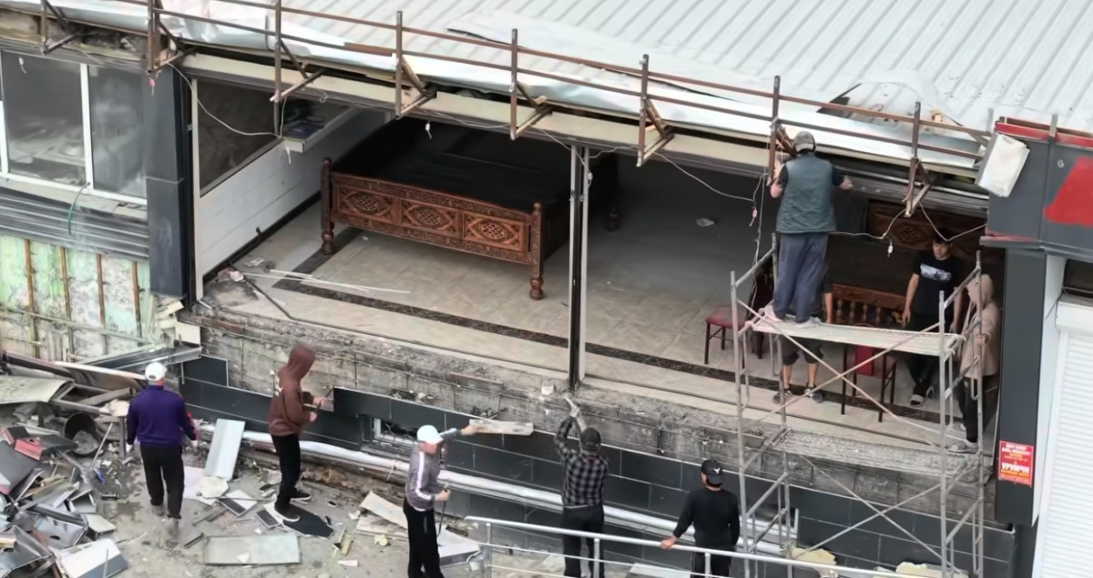 Ош шаарында мыйзамсыз курулуштарды жоюу боюнча иштер уланууда. Бул жолу А. Масалиев көчөсүндө жайгашкан Аль-Мансур кафеси демонтаждалууда. Бул тууралуу шаардык мэриядан билдиришти.