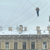 Орусияда кар күрөп жатып чатырдан кулаган жаран электр зымдарына илинип калды