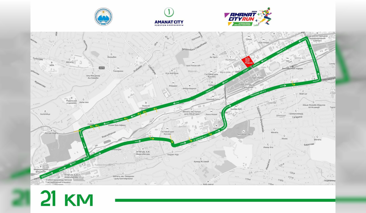 Ошто 12-майда саат 08:00дөн 10:30га чейин “Amanat Run” эл аралык чуркоо боюнча жарым марафонуна байланыштуу унаа жолдордун бир тарабы жабылат. Бул тууралуу бүгүн, 10-майда Ош мэриясынан билдиришти.