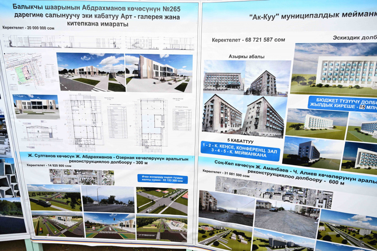 Ага ылайык, калаадагы муниципалдык мейманкананы реконструкциялоо, асфальт-бетон жана темир-бетон заводун куруу, мурдагы ресторандын имаратында 150 орундуу бала бакча куруу, заманбап көркөм сүрөт галереясын, IT китепканасын түзүү, шаардын бир катар көчөлөрүн реконструкциялоо пландары каралып, талкууланган.