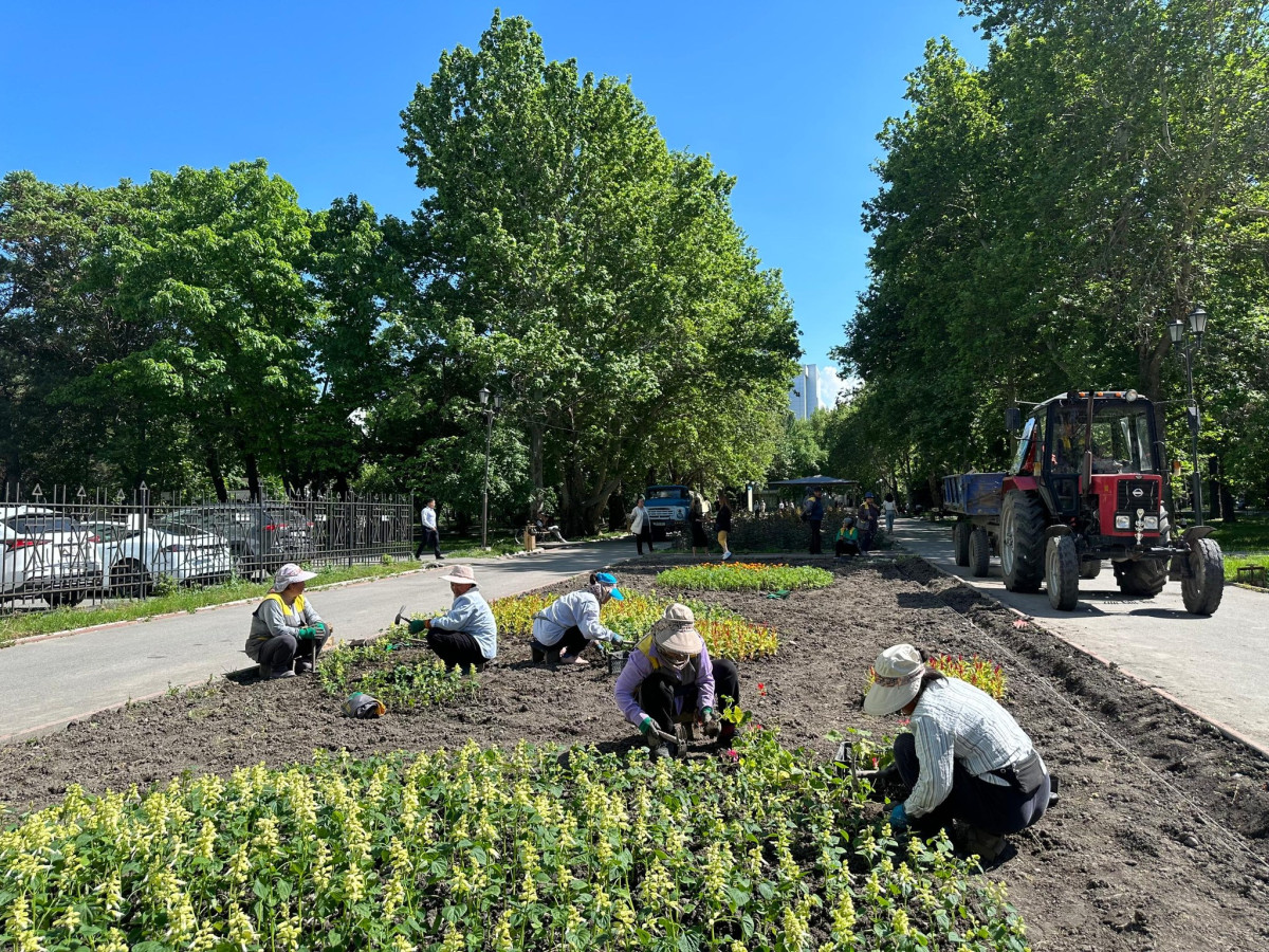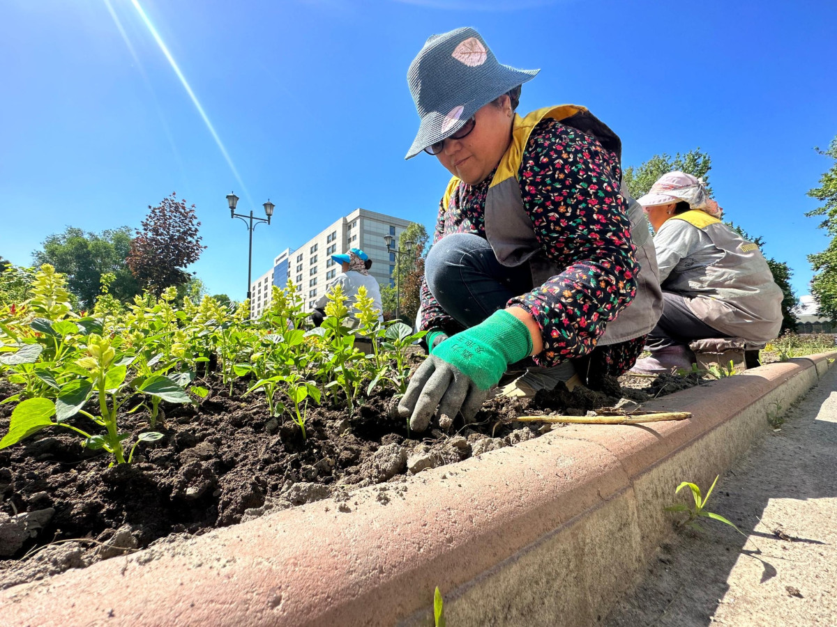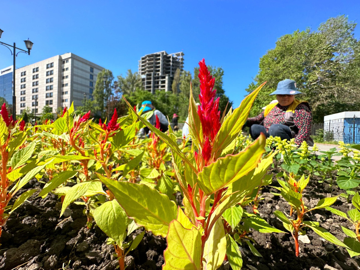Азыр "Бишкек жашыл курулуштун" жумушчулары жоогазындын баштарын чогултуп, алардын ордуна бир жылдык гүлдөрдү отургузууда. Жашылдандыруу иштери ар бир райондо улантылууда.