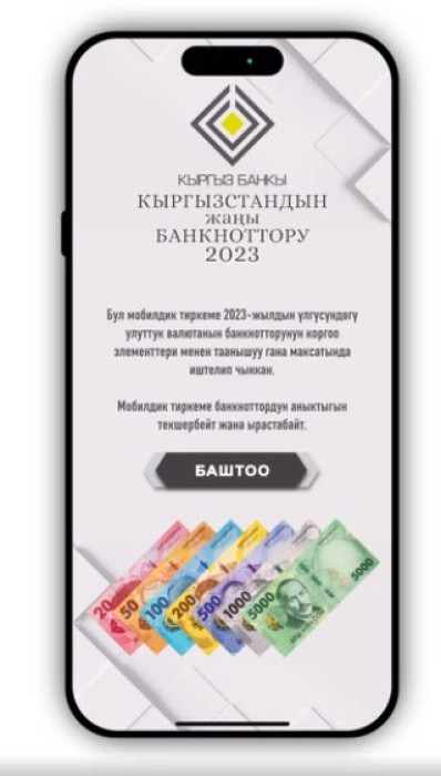 Улуттук банк 2023-жылда чыккан жаңы банкноттордун коргоо элементтерин интерактивдүү форматта көрсөтүү максатында "Кыргыз сом" мобилдик тиркемесин иштеп чыкты. Бул тууралуу кечээ, 15-майда мекемеден билдиришти.