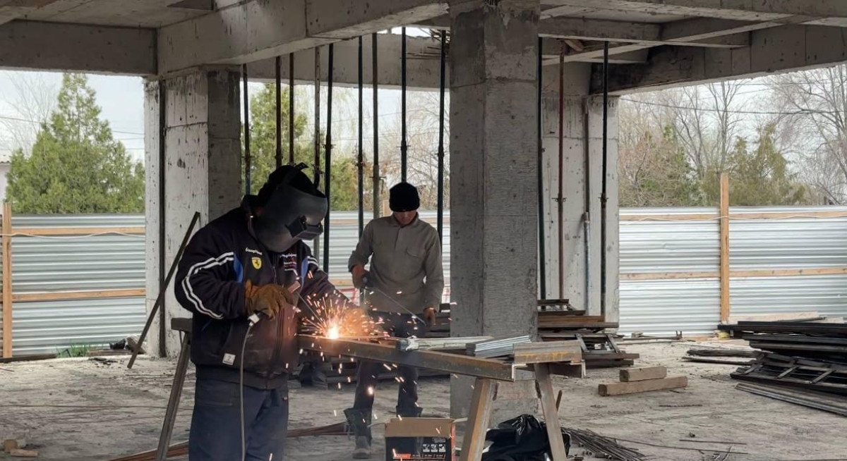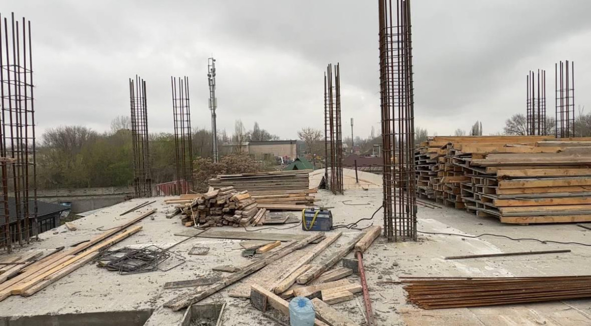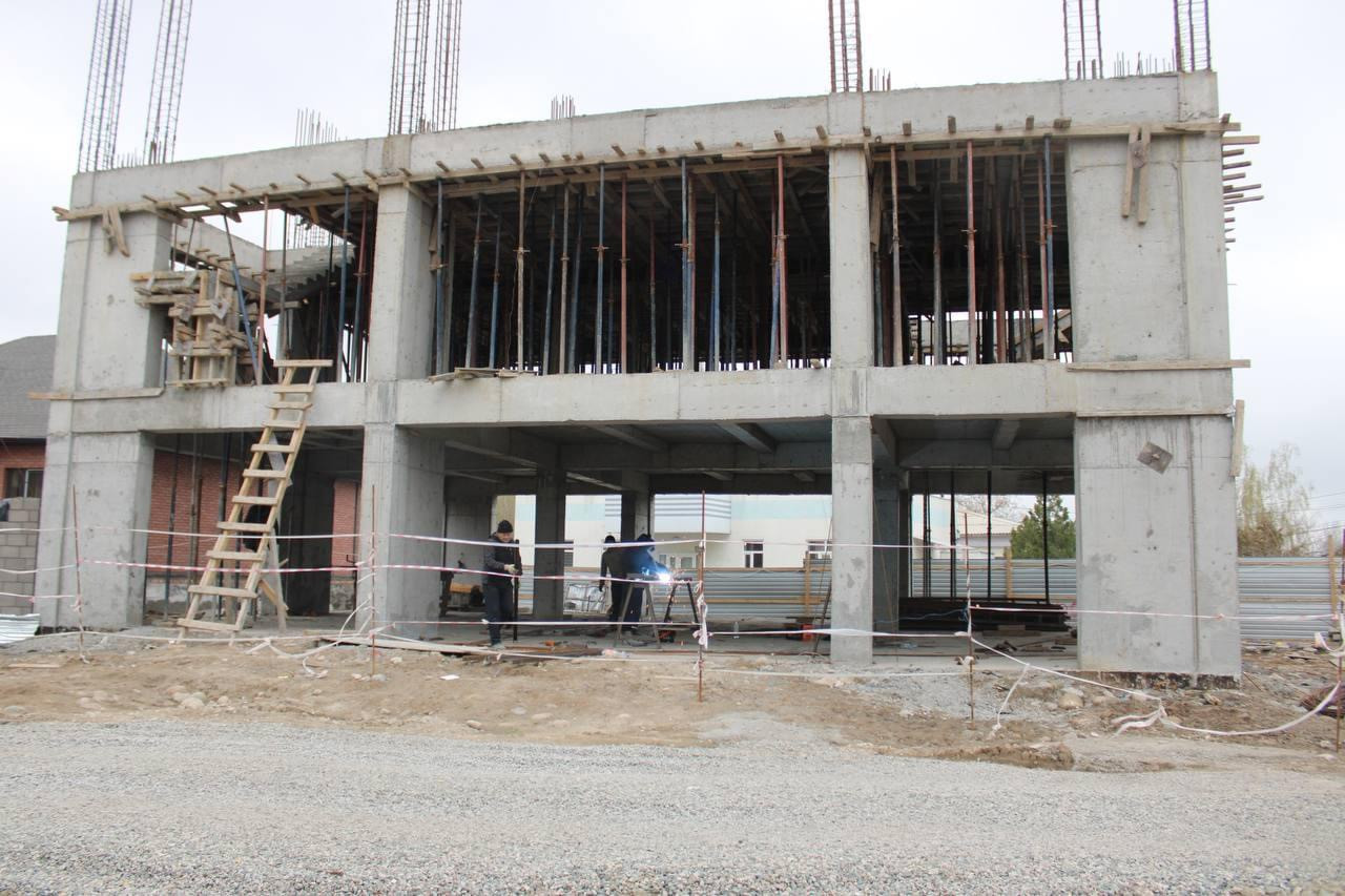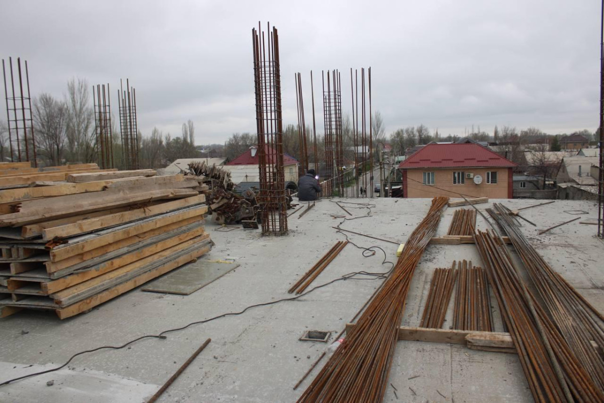 Маалымдалгандай, учурда 1-кабатына кирпич коюу иштери жүрүп, 3-кабаттын монолиттүү полун бекемдөө иштери жүрүп жатат.