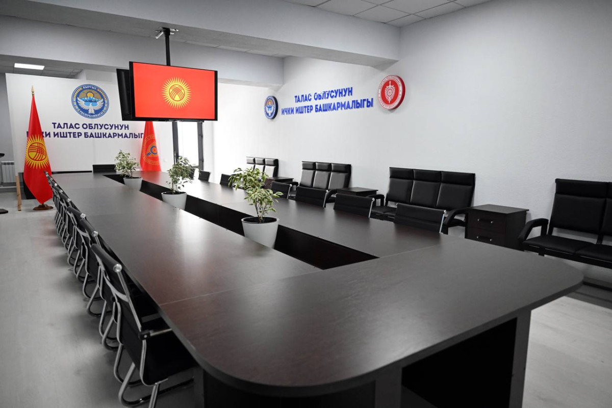 "Садыр Жапаров бул башкармалыктын мурдагы имараты Советтер Союзу учурунда эле курулуп, мамлекеттик башка имараттардай эле жыл сайын оңдоп-түзөө иштерине каражаттар талап кылынып келгенин эске салды. Имарат алгач Маданият үйү катары 1985-жылы салына баштап, 1987-жылы кайсы бир себептерден улам курулуш иштери токтоп калган. Андан бери бул имарат колдон-колго, өкүнүчтүүсү, жеке менчикке өтүп кеткен жайы да бар эле. Арадан 36 жыл өткөндөн кийин Талас облустук ички иштер башкармалыгына бул имаратты өткөрүп берүү чечими кабыл алынган. Ал кезде имараттын төрт дубалдан башка эч нерсеси болгон эмес. Курулуш 2023-жылдын сентябрь айында башталып, 7 айда толугу менен аяктады", - деп айтылат маалыматта.
