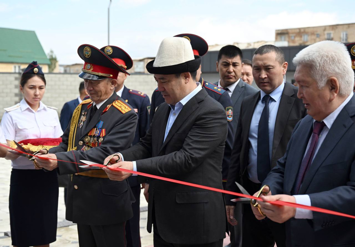 Өлкө башчы Садыр Жапаров бүгүн, 21-майда Талас облустук ички иштер башкармалыгынын Талас шаарындагы жаңы имаратынын ачылышына катышты.