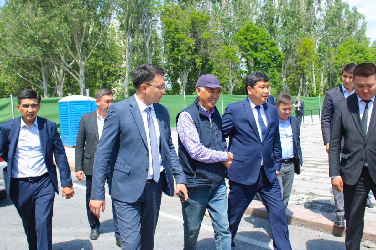 Мындан тышкары Республикалык "Эмгек резерви" дене тарбия жана спорт борборунун аймагындагы стадиондун курулушу менен таанышты.