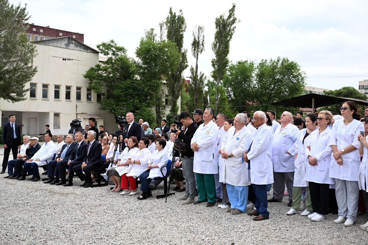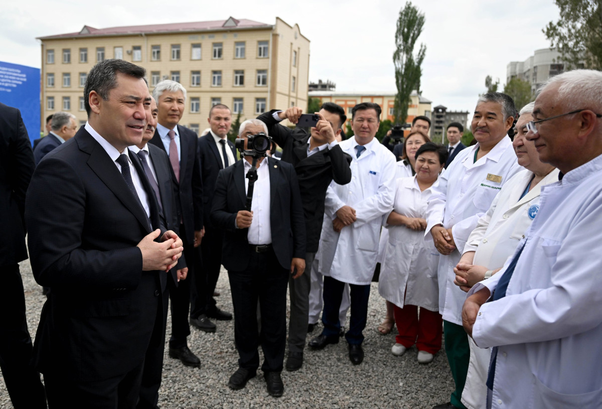 Ошондой эле мамлекет башчысы жеринде медициналык мекеменин жамааты менен баарлашты. Анын жүрүшүндө кадрлардын жетишсиздиги, турак жай менен камсыз кылуу жана башка маселелер талкууланды.