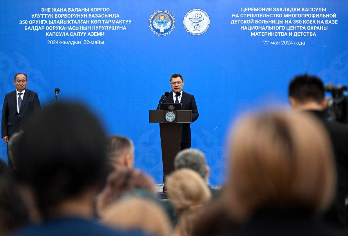 Өлкө башчы Садыр Жапаров бүгүн, 22-майда Бишкектеги Эне жана баланы коргоо улуттук борборунун аймагына көп тармактуу корпустун курулушун баштоо үчүн мезгил кутусун салды. Бул тууралуу президенттин басма сөз кызматынан билдирди.