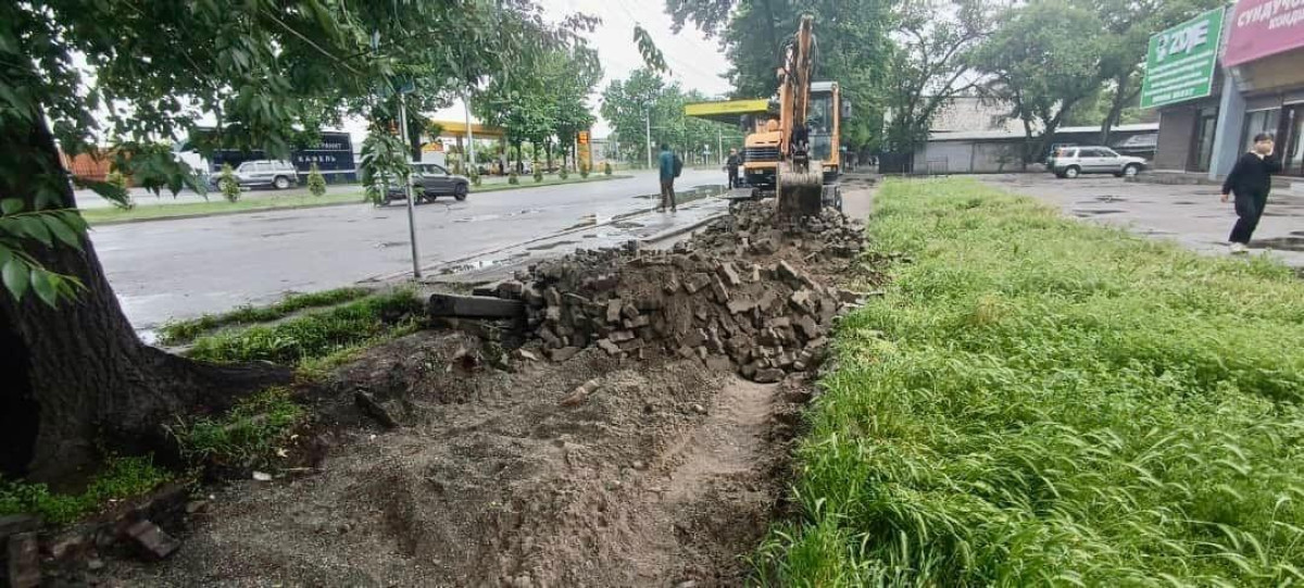 Маалымдалгандай, аталган көчөнүн эски асфальты алынып, эски бордюрлар жана ирригациялык системалар демонтаждалууда.