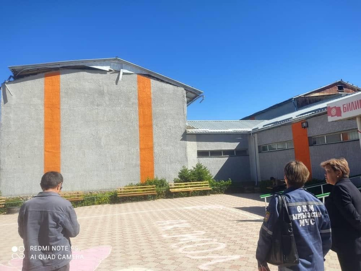 Ага ылайык, катуу шамалдан Жети-Ɵгүз районунун Жети-Ɵгүз айылындагы Д.Иманов атындагы орто мектебинин спорт залынын чатыры толугу менен ордунан 1 метр аралыка жылып кеткен.