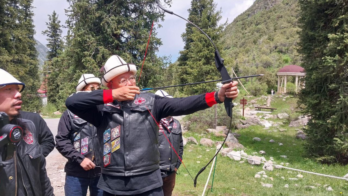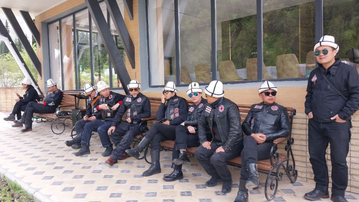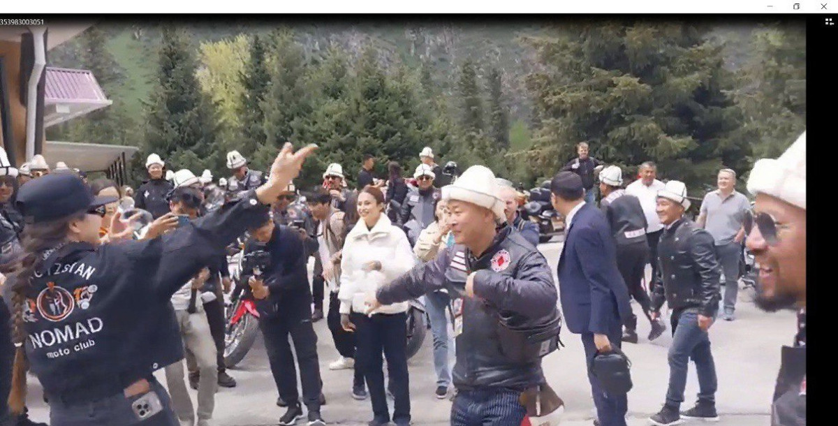 Кытайдан келген мото сүйүүчүлөр кара жорго бийин бийлешти.