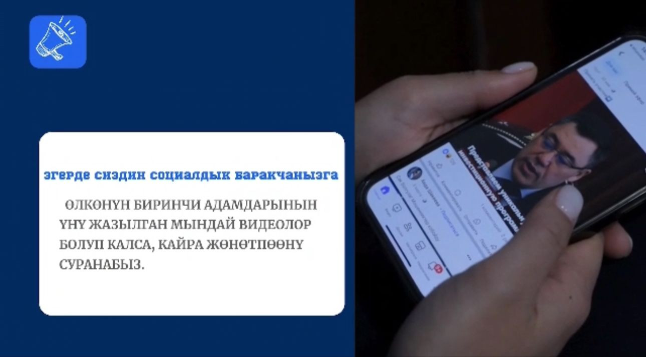 "Урматтуу жарандар, өлкө жетекчилигинин үндөрү менен жасалган жалган видеолорго жана үн билдирүүлөрүнө ишенбеңиздер. Эгерде сиздин социалдык баракчаңызга ушундай видеолор чыгып калса, ага ишенип, башкаларга жөнөтпөөнү суранабыз. Жалган маалыматты тараткандарга мыйзамда жоопкерчилик каралганын эскертебиз", - деп айтылат билдирүүдө.