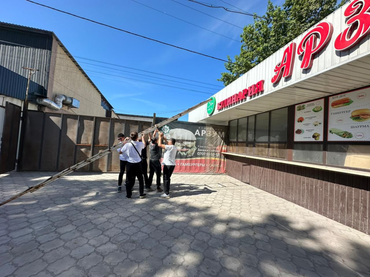 "Иретке келтирүү иштерин Мамкурулуш агенттигинин директору Нурдан Орунтаев, директордун орун басары Бакай Турдугулов жана тиешелүү мамлекеттик органдар жеринен көзөмөлдөөдө", - деп айтылат маалыматта.