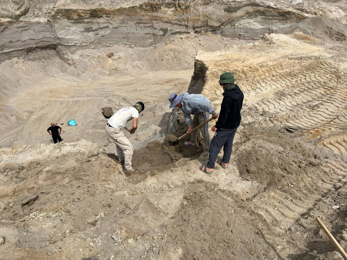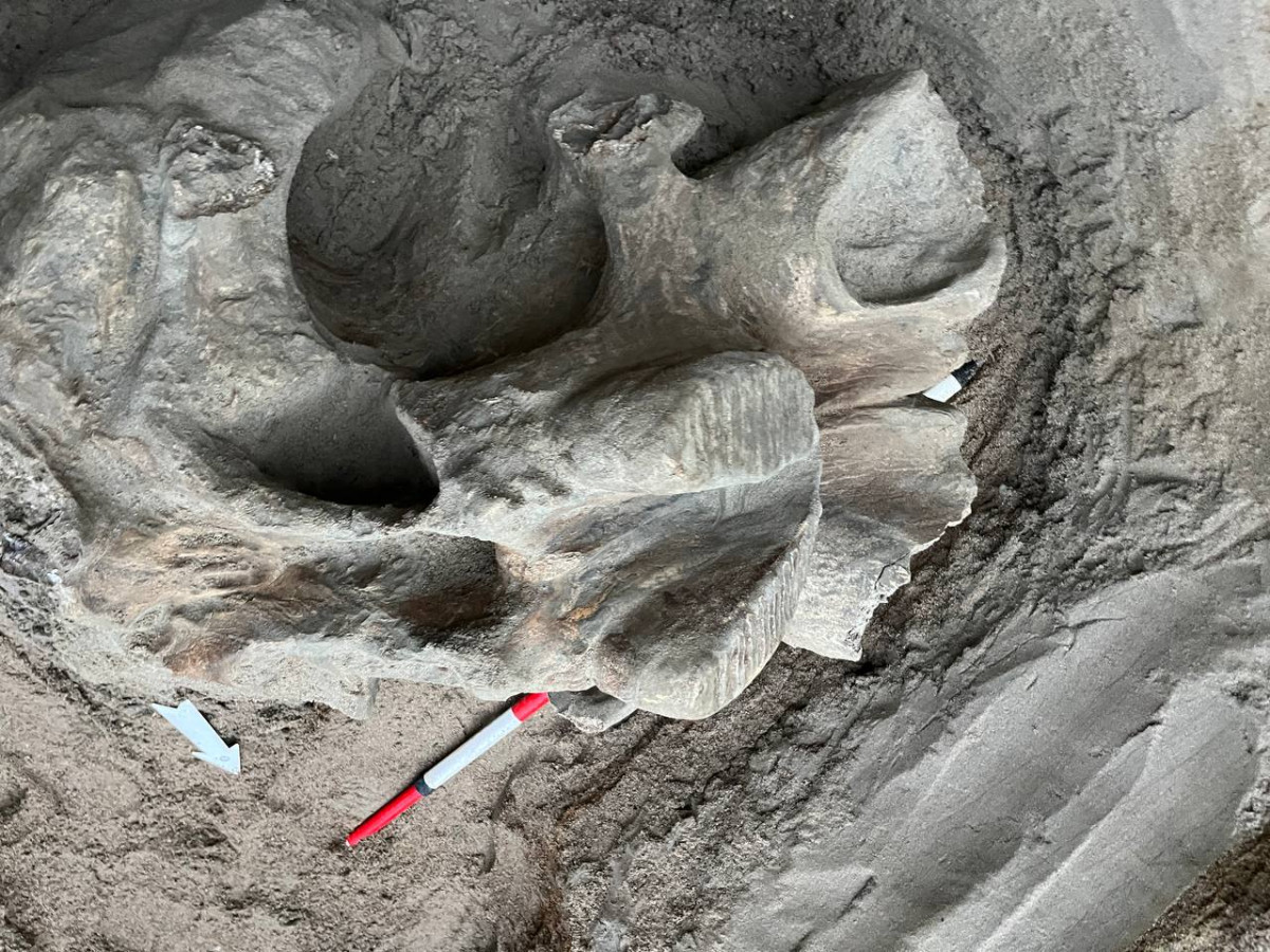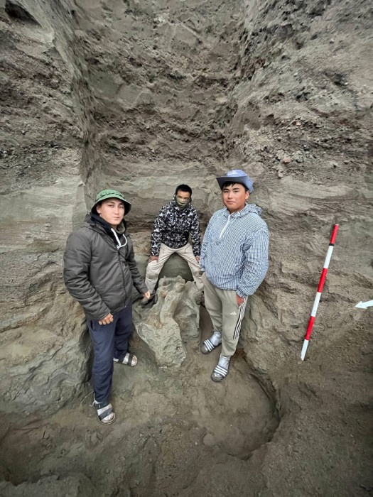 "Текшерүү учурунда карьердин 3-5 метр тереңдиктеги кум-шагыл кендеринен бири-биринен 140-150 метр аралыкта эки башка жерден тиштин жана астыңкы жаактын сыныктары табылганы белгилүү болду. Азуу табылган жерди тазалоодо сөөктүн дагы бир бөлүгү табылды. Ачыкка чыккан сөөктөр баштапкы абалында көпкө калбайт жана күндүн нурунун таасиринен тез талкаланат.