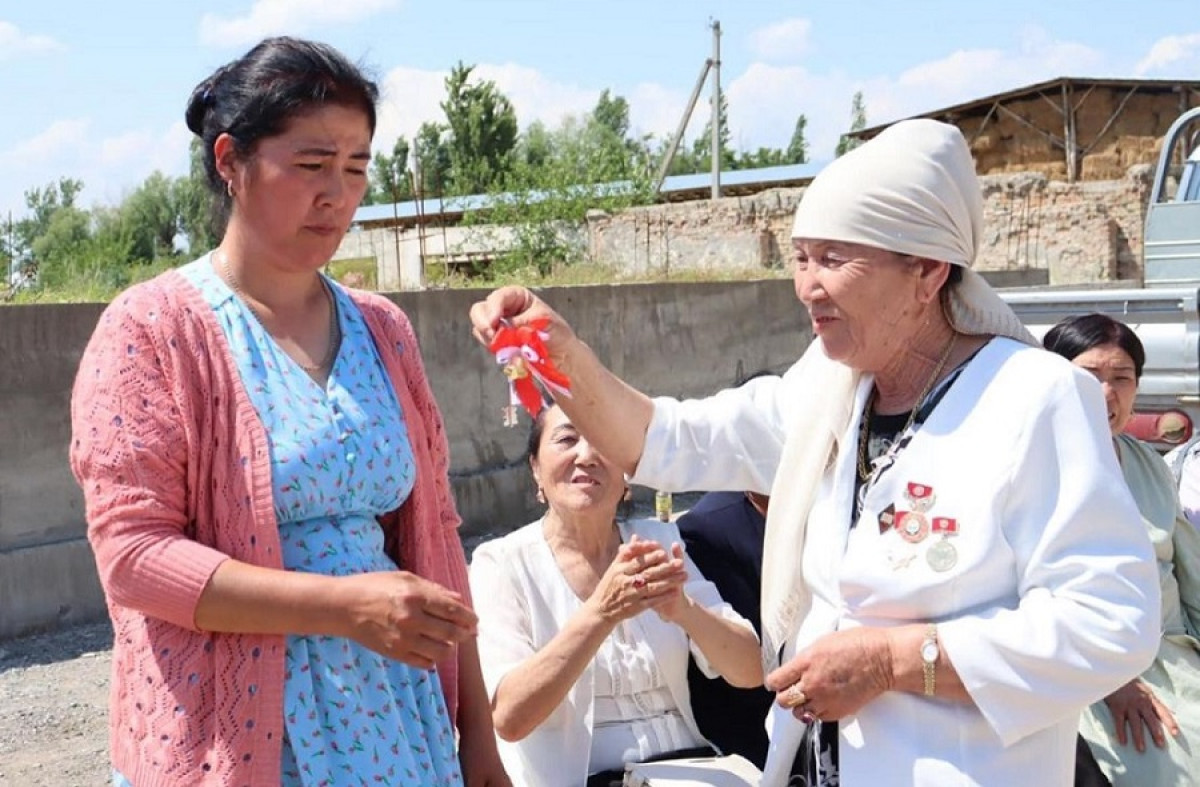 "Ал эми үйлүү болуп кубанып турган эне уюштуруучуларга жана демилгечилерге ыраазычылыгын билдирди. Сооптуу иштин башында турган 1987-жылкы балдардын мындай аракети айыл элин кубантты", - деп айтылат маалыматта.