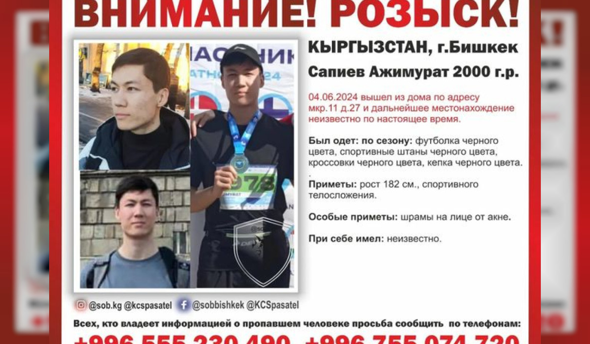 "Издөө иштерине активдүү катышкан Октябрь РИИБинин издөө бөлүмүнүн кызматкерлерине, дайынсыз жоголгон адамдын жакындарына ыраазычылык билдиребиз", - деп айтылат маалыматта.