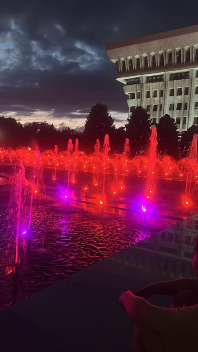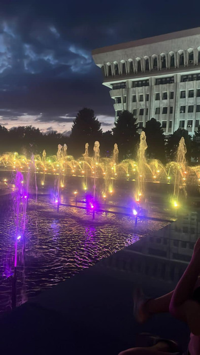 Ак үйдүн алдындагы фонтан капиталдык оңдоодон өткөрүлүп, кечээ, 13-июнда ишке киргизилди. Анын кечки көрүнүшүн Президенттик администрациянын маалыматтык саясат кызматынын жетекчиси Дайырбек Орунбеков социалдык тармактагы баракчасына жырыялады.