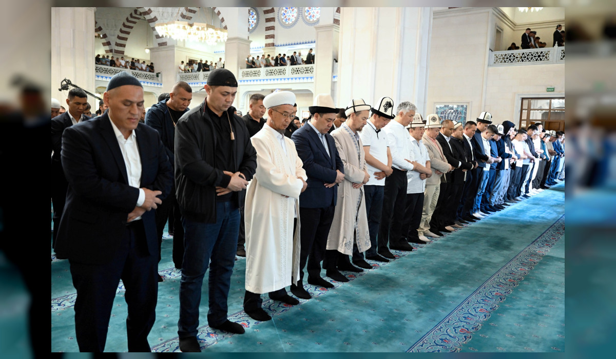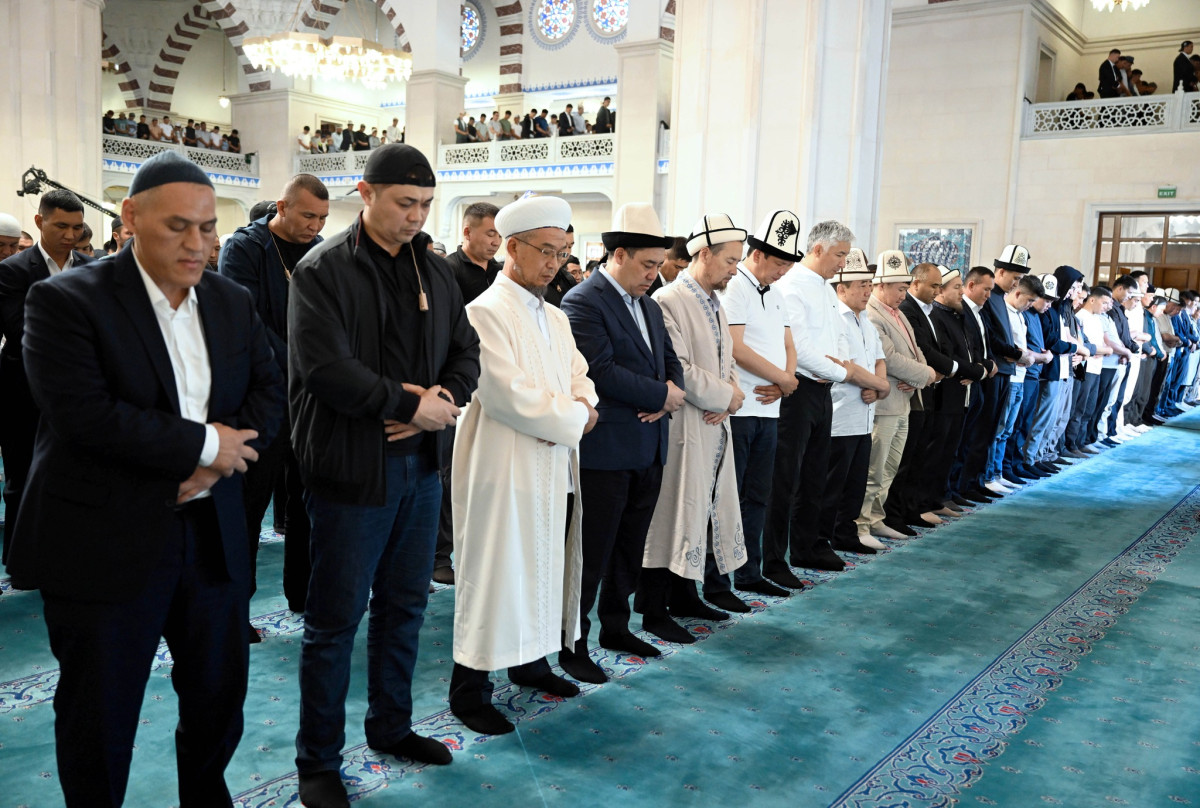 Айт намазын президент Бишкек шаарындагы Имам Сарахси атындагы борбордук мечитте окуду.
