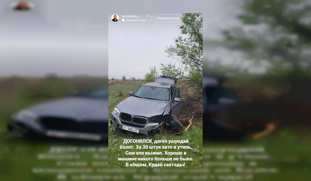 Балыкчы шаарынын мурдагы мэри Султан Кермалиев жол кырсыгына кабылды. Ал жаштарды катуу ылдамдыкта унаа айдабоого чакырып, талкаланган BMW үлгүсүндөгү унаасын көрсөттү.