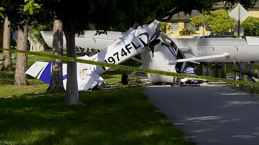 АКШнын Флорида штатында бир моторлуу учак унаанын чатырын кесип, сейил бакка кулап, жети адам жабыркады.