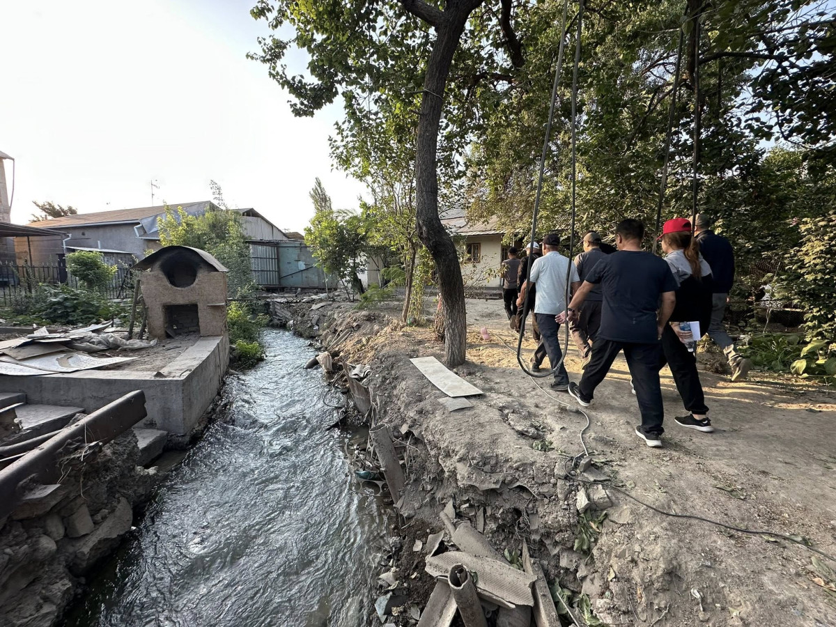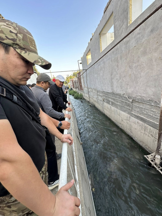 Андан соң шаар аймагындагы Кызыл-Кыштак аймактык башкармалыгын аралап өткөн “Жөө бас” каналынын корук аймагын бошотуу иштеринин жүрүшүн текшерип, жумуш начар жана жай жүрүп жатканын айтып, тездетип канал жээгин ачуу иштерин алып барууну тапшырды.