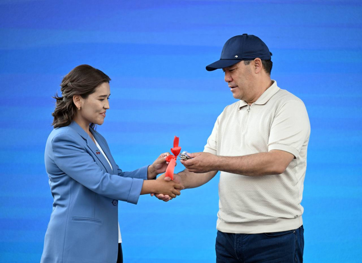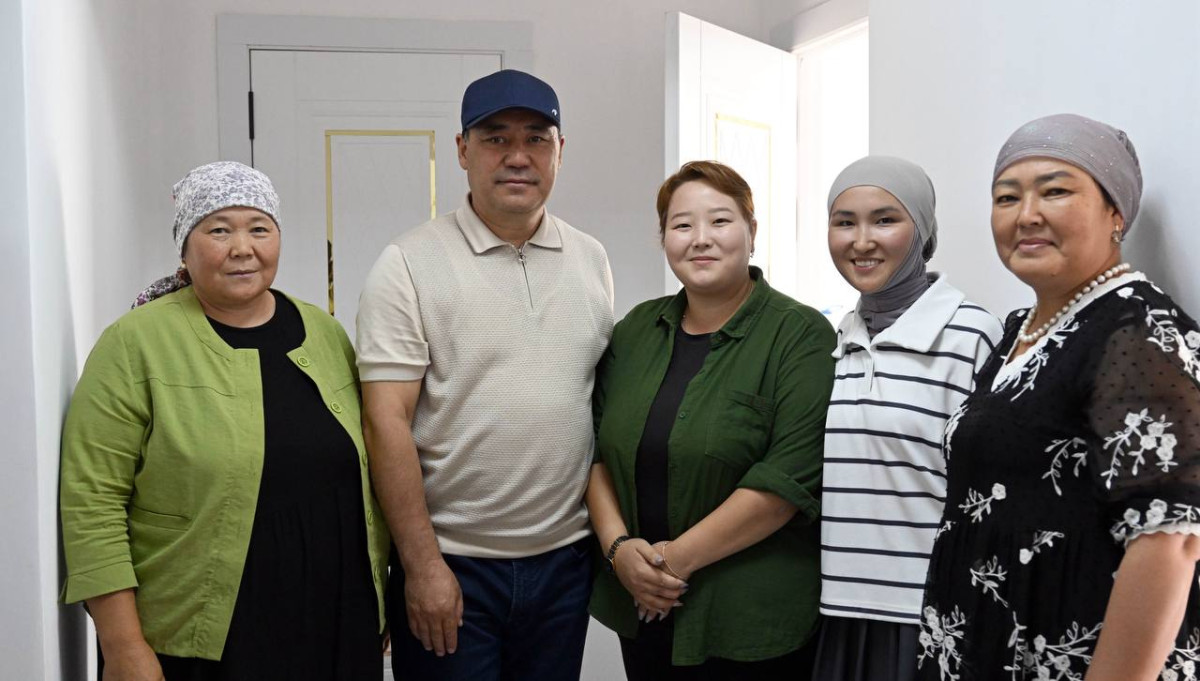 Президент Каракол шаарынын тургуну, облустук бириккен ооруканада иштеген 3 баланын энеси Махабат Шеримбековага жаңы батирдин ачкычын тапшырды. Ошондой эле батирлерди көрүп чыгып, жаңы конуш ээлери менен баарлашып, аларга жаңы үйлөрү берекелүү жана тынч болсун деген тилегин айтты.