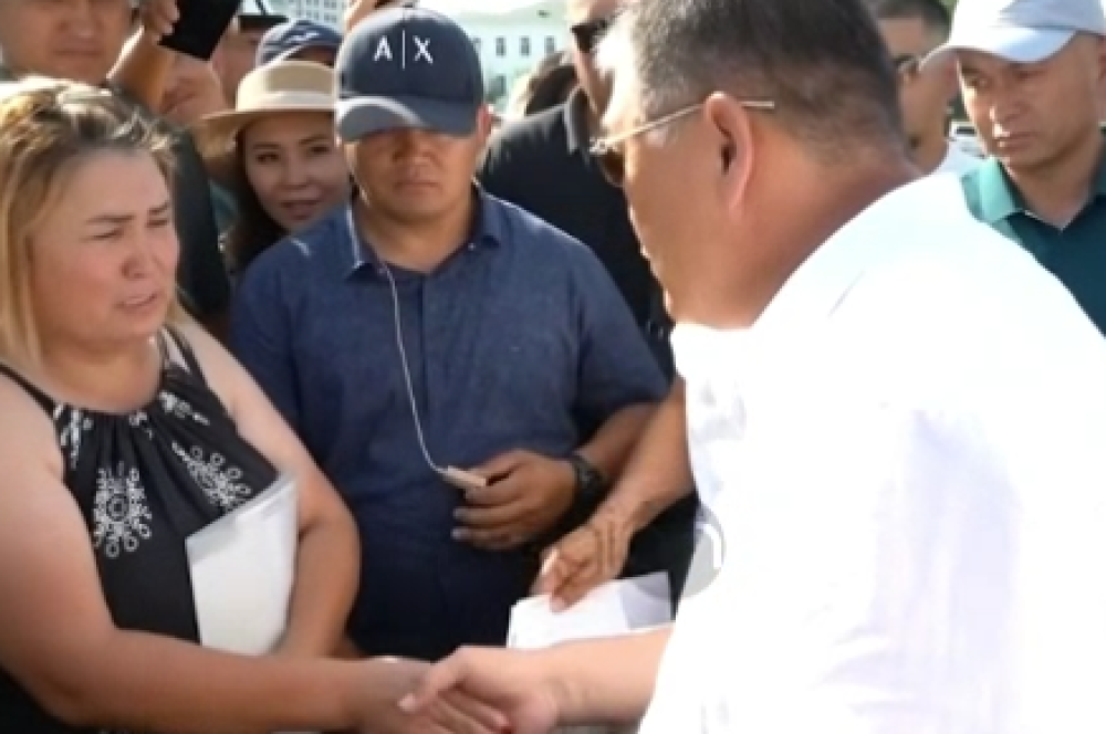 Ал кечээ, 11-августа Ош шаарына иш сапары менен барып, калаа мэриясына алынган атайын техникаларды тапшыруу аземине катышкан. Гүлзина аттуу айым атайын кызматтын башчысынын алдынан тосуп чыгып, 17 жаштагы уулу оюнчук тапанчанын айынан 5 жылга камалып калганын айтты.