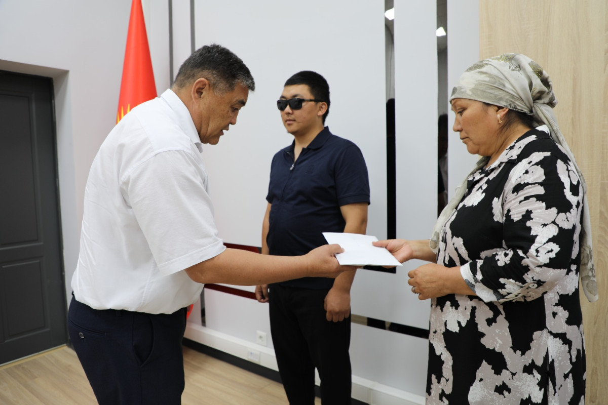 Ташиев чек ара жаңжалында эки көзүнөн ажыраган жаранга каржылык колдоо көрсөттү(фото)