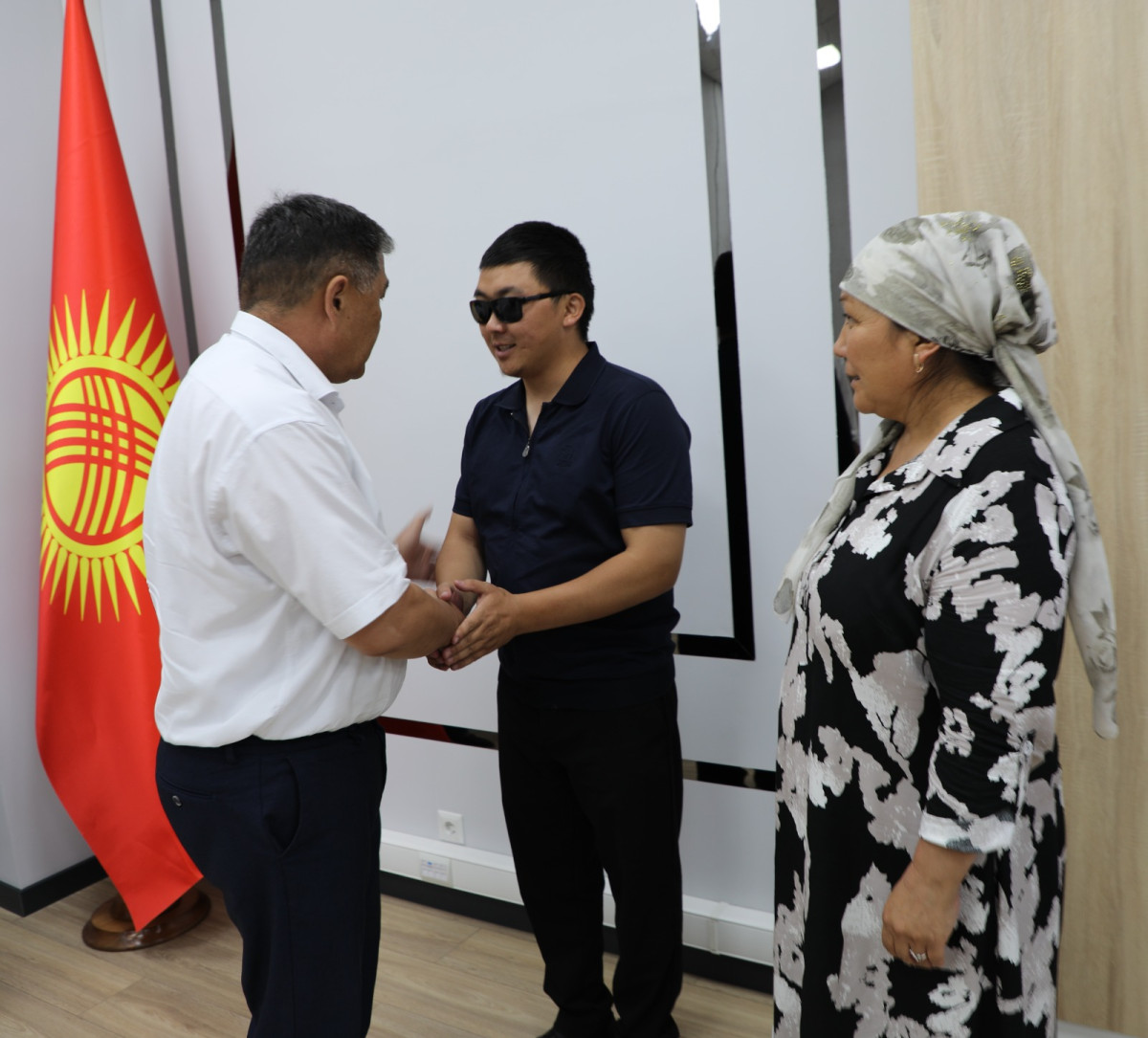 Бүгүн, 12-августта УКМК төрагасы Камчыбек Ташиев Ош облусунун Ноокат районунун тургуну, 2022-жылы Баткен чек ара жаңжалында көзүнө жарылгыч заттын учкуну чачырап, эки көзүнөн жаракат алган Төлөнов Элдияр Таалайбековичди кабыл алып каржылык жардам көрсөттү. Бул тууралуу Улуттук коопсуздук мамлекеттик комитетинен билдиришти.