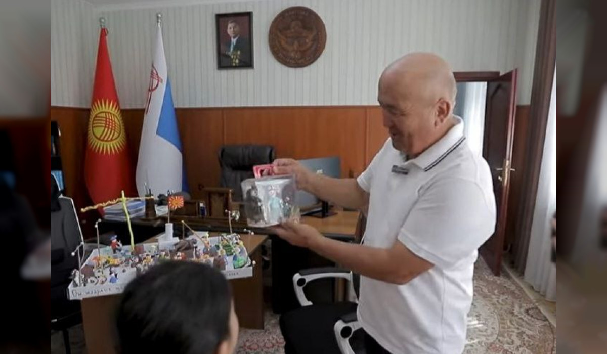 Ош шаарынын мэри Жеңишбек Токторбаевге 8 жаштагы Лейли Нурсултан кызы анын рейд учурундагы жана иш үстүндөгү образын пластилинден жасап, белек кылды. Бул тууралуу калаа башкармалыгы билдирип, видео бөлүштү.