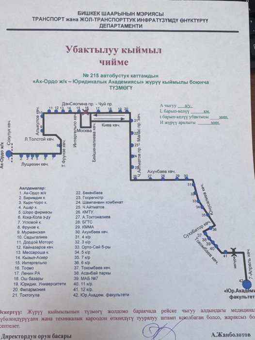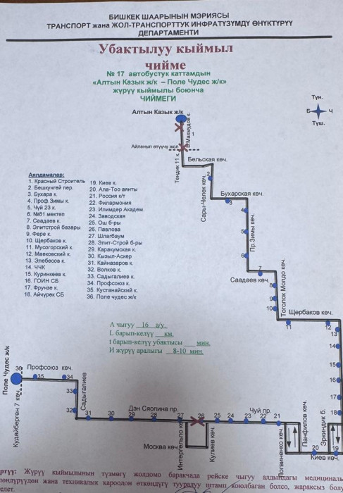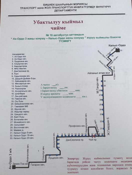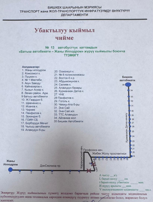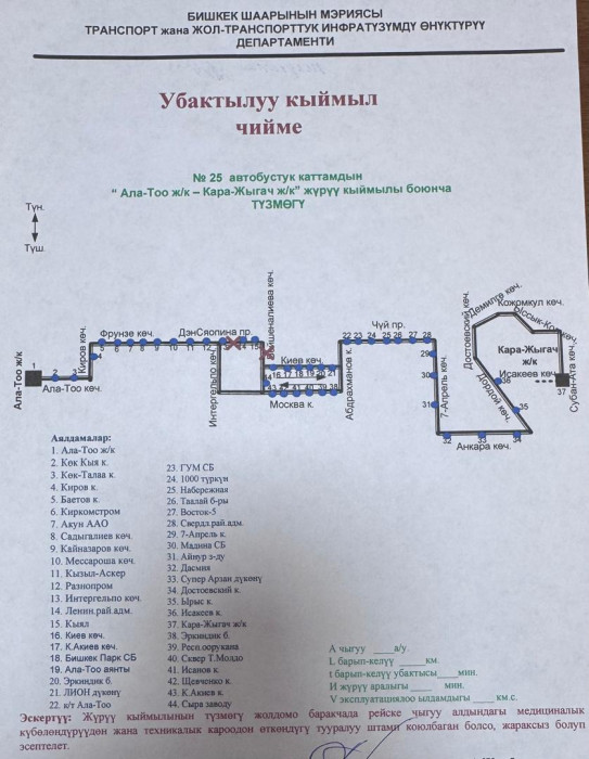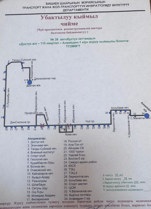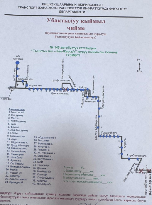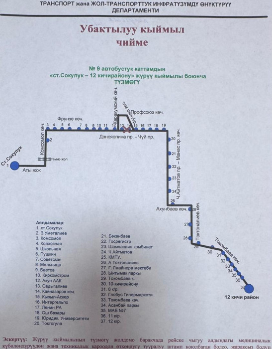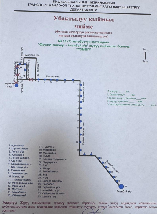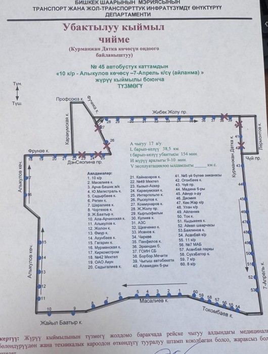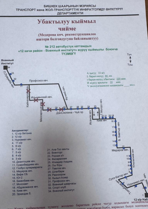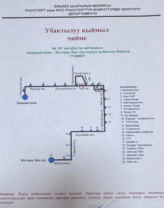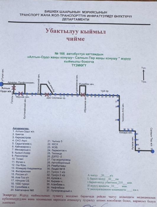 Маалыматка ылайык, төмөнкү автобустук каттамдардын кыймыл схемасы жарым-жартылай өзгөртүлдү: №10Т, №25, №42, №17, №40, №9, №166, №145, №14Т, №13, №212, №15, №35, №32, №45, №254, №215 жана №38.