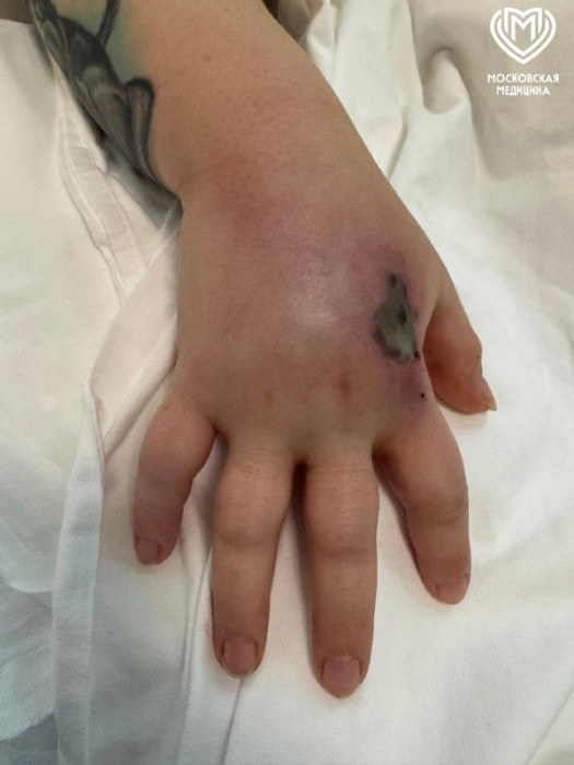 Жабырлануучу колунун ириңдүү сезгенүүсү менен ооруканага жеткирилип, дарыгерлер анын денесиндеги ууну тез арада алып чыгышкан. Абалы турукташкандан кийин кыз ириңдүү хирургия бөлүмүнө которулуп, учурда дарыланууда. Дарыгерлер өз убагында медициналык жардам оор кесепеттерден качууга жардам бергенин белгилешет. Учурда бейтап айыгып жатат, бирок адистердин көзөмөлүндө.