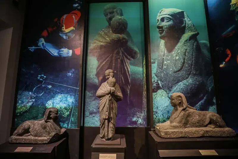 Кечээ, 21-августта Египеттеги Александрия шаарынын жана Жер Ортолук деңизинин жээгинде мурда чөгүп кеткен байыркы Канопус шаарын кооздогон айкелдерди суудан көтөрүп чыгышты.