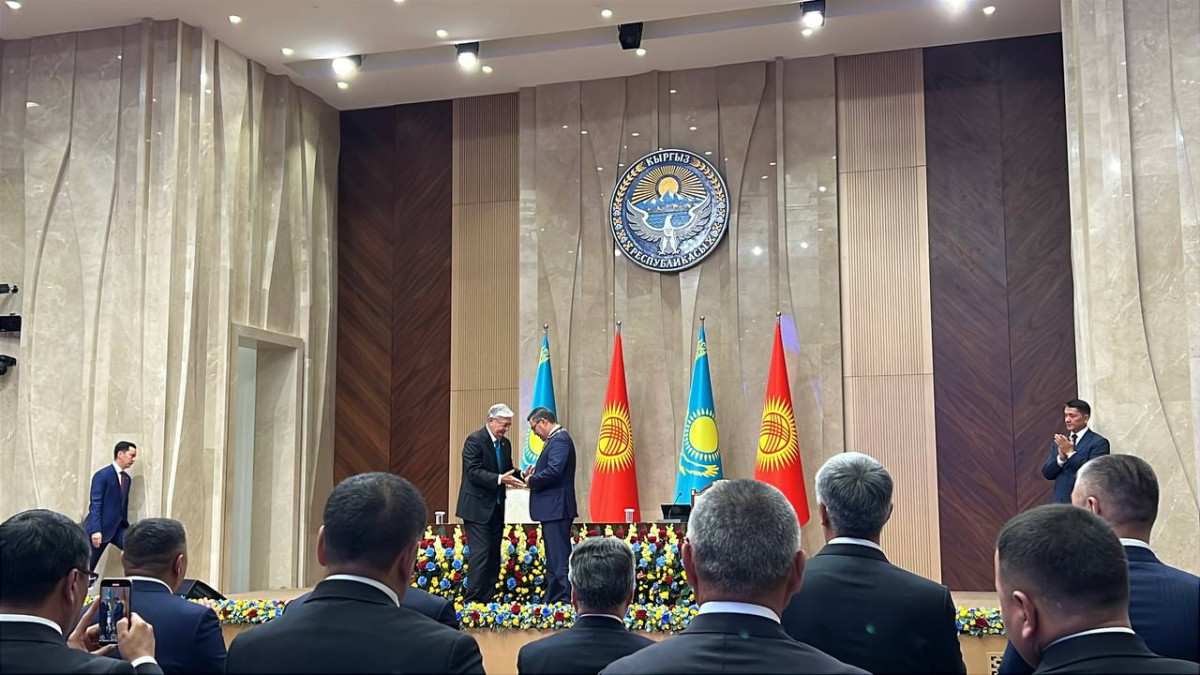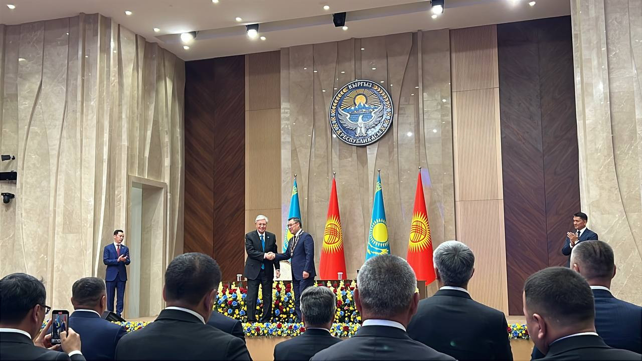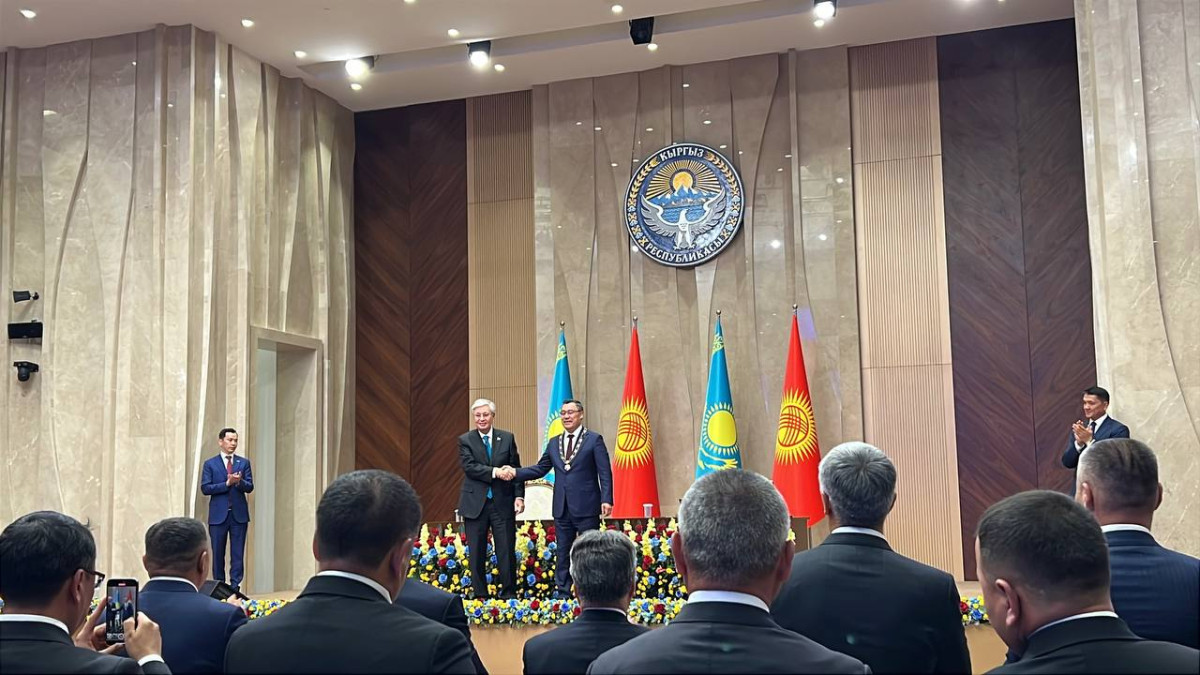 Бүгүн, 22-августта Казакстандын президенти Касым-Жомарт Токаев өлкө башчысы Садыр Жапаровго Казакстандын эң жогорку мамлекеттик сыйлыгы болгон "Алтын Кыран" орденин тапшырды.