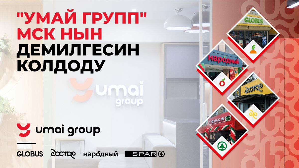"Умай Групп" компаниясы ишеним көрсөтүп, Globus, "Народный", "Достор" жана SPAR дүкөндөрүн тандаган бардык кардарларга ыраазычылык билдирет.