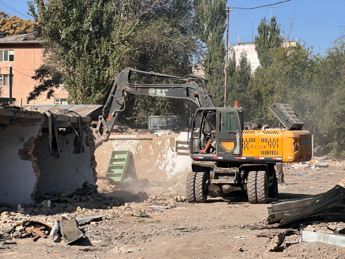 Бишкек шаарындагы Лев Толстой көчөсү, 1а дарегинде жаңы тротуар куруу жана көрктөндүрүү иштеринин алкагында курулуш иштерине тоскоол болгон объектилерди демонтаждоо иштери жүрүп жатат. Бул жерде гараж кооперативи жайгашкан. Бул тууралуу мэрия кабарлады.