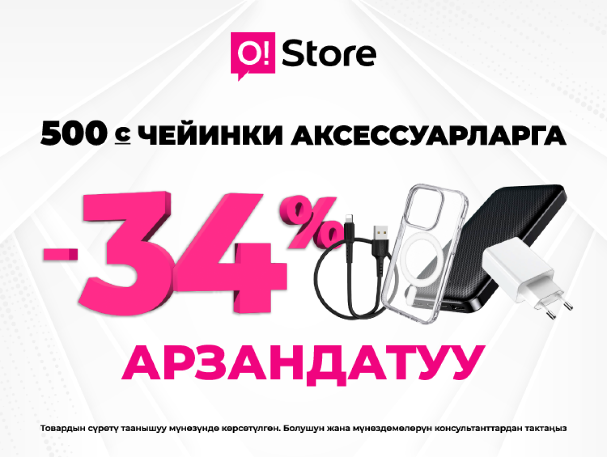 Жакында Кыргызстан эгемдендүүлүгүнүн 34 жылдыгын белгилейт. Атайы майрамдын урматына O!Store бардык коноктору үчүн аксессуарларга 34% арзандатуу берет!