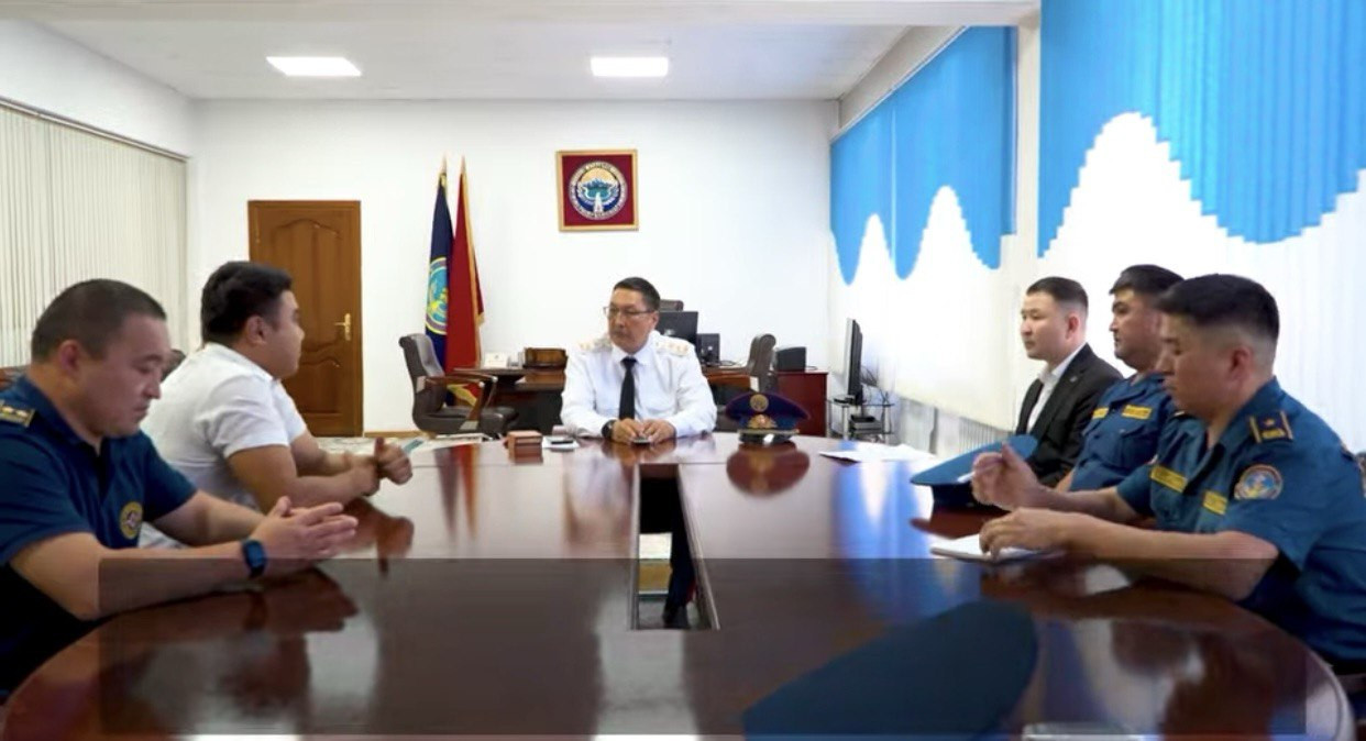 Өзгөчө кырдаалдар министри Бообек Ажикеев 7–8 жаштагы баланы аман алып калышкан куткаруучуларга ыраазычылык билдирип, медаль тапшырды.