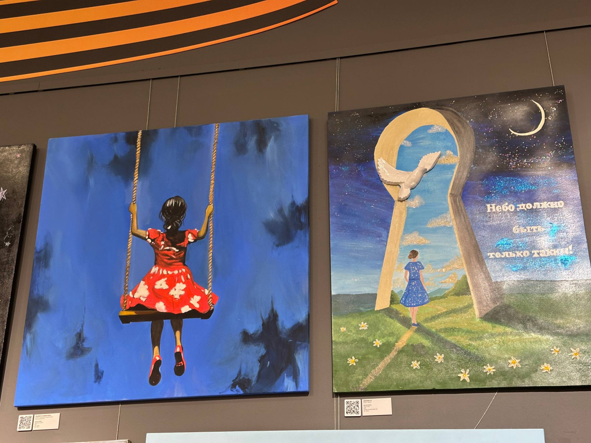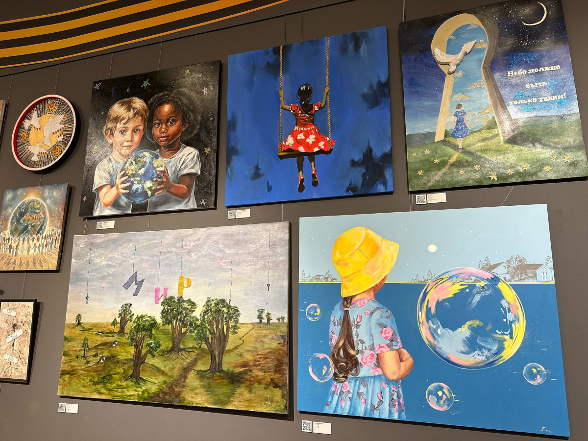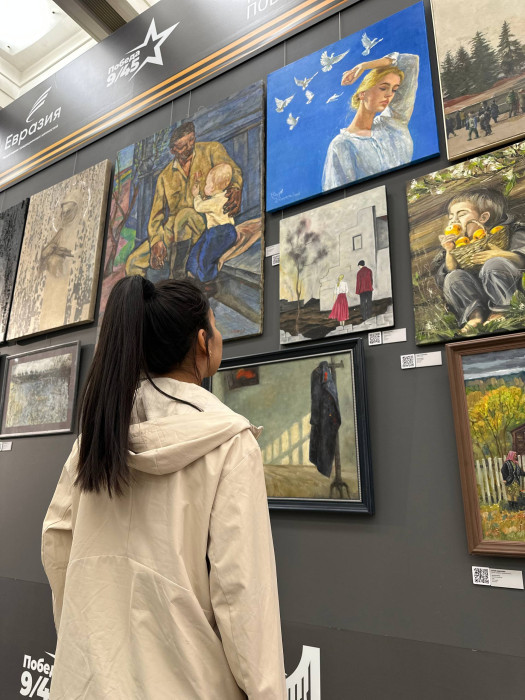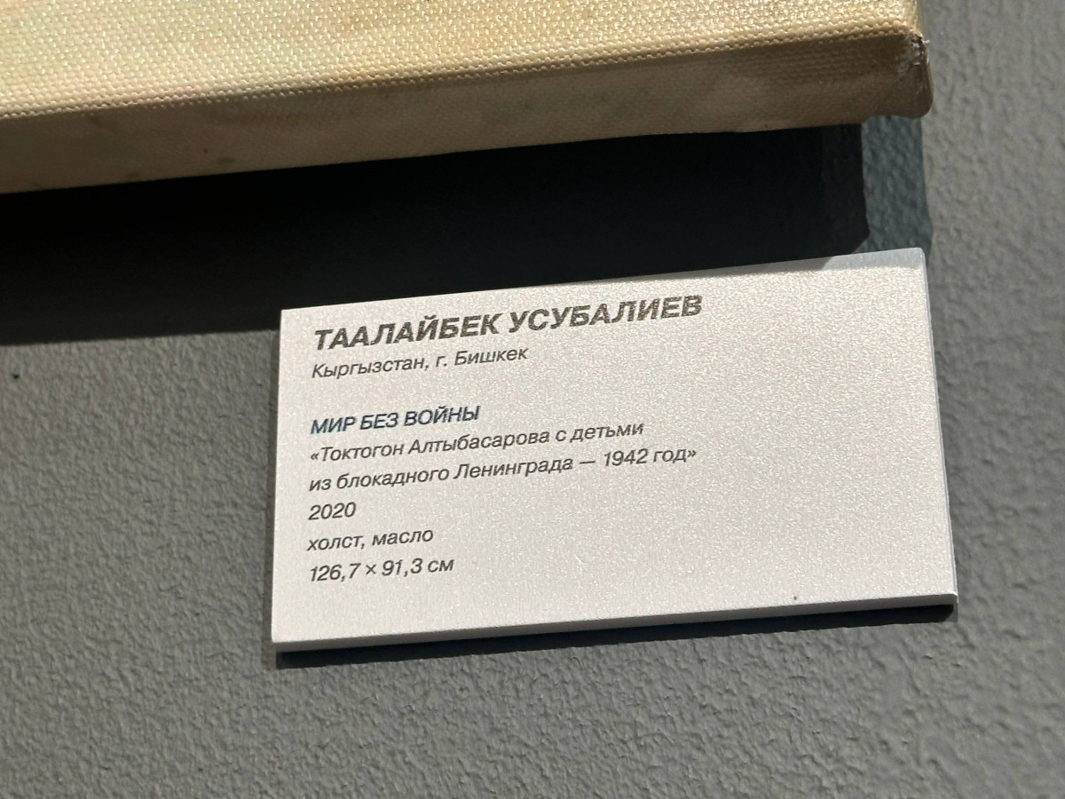 "Кыргызстандан келген сүрөттүн автору - Таалайбек Усубалиев. Бул сүрөт Ленинград блокадасындагы согуштун оор сыноолорунун жаркын элесине арналган. Сүрөттөн келечекти үмүт менен караган жаш балдарды көрүүгө болот. Алардын көздөрүнөн башынан өткөргөн кыйынчылыктардын оордугу, ачуусу сезилет",- дейт көргөзмөнүн волонтеру Анна Булбенко.