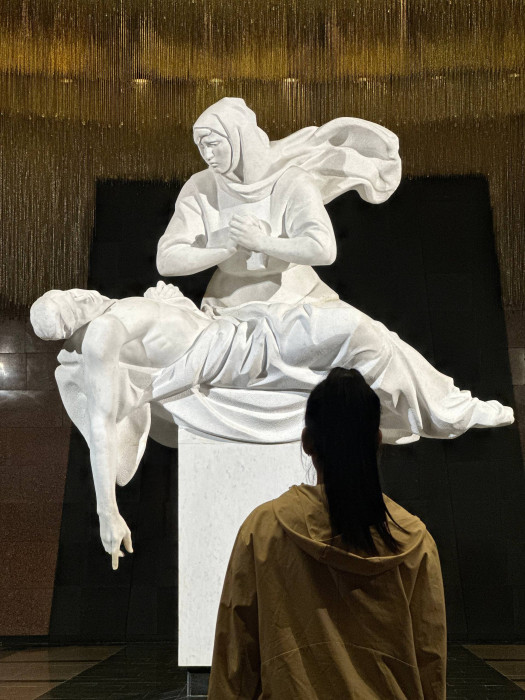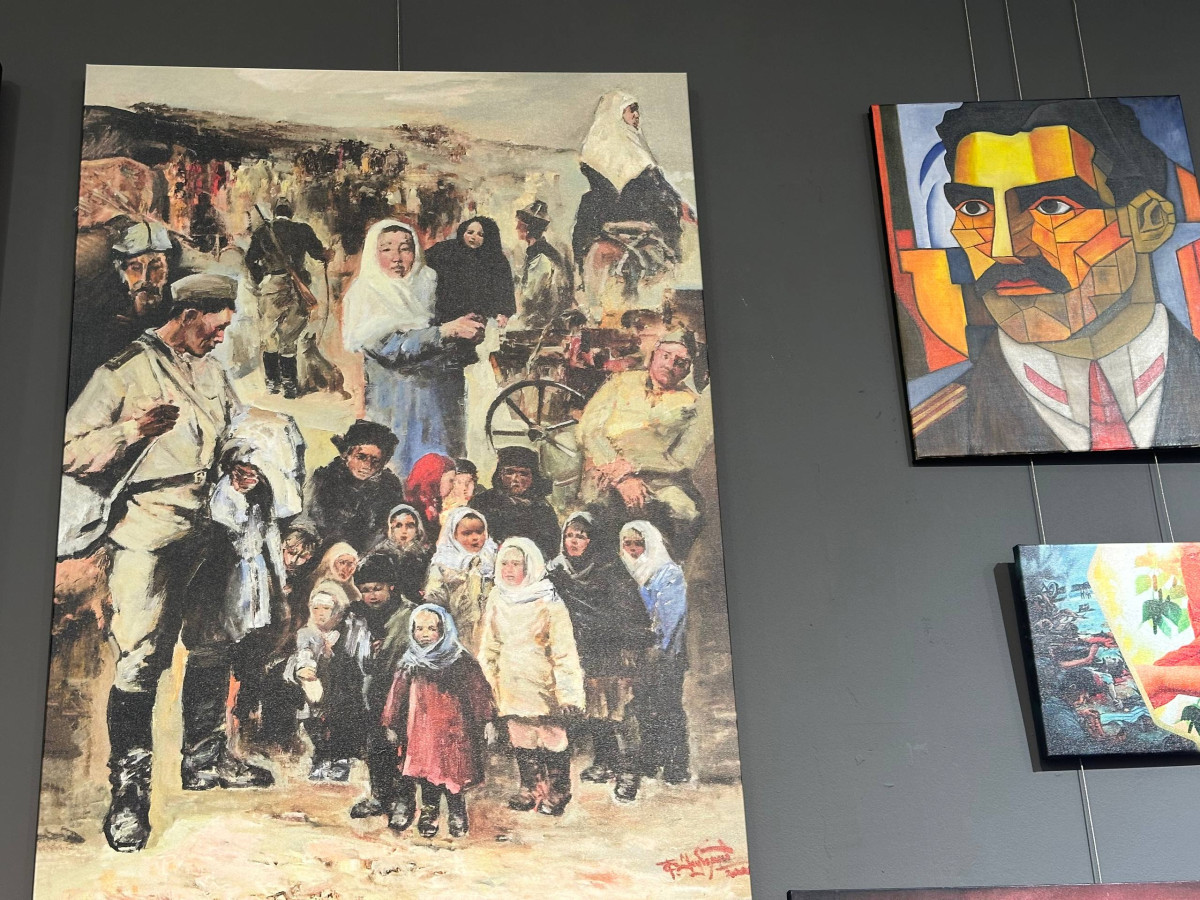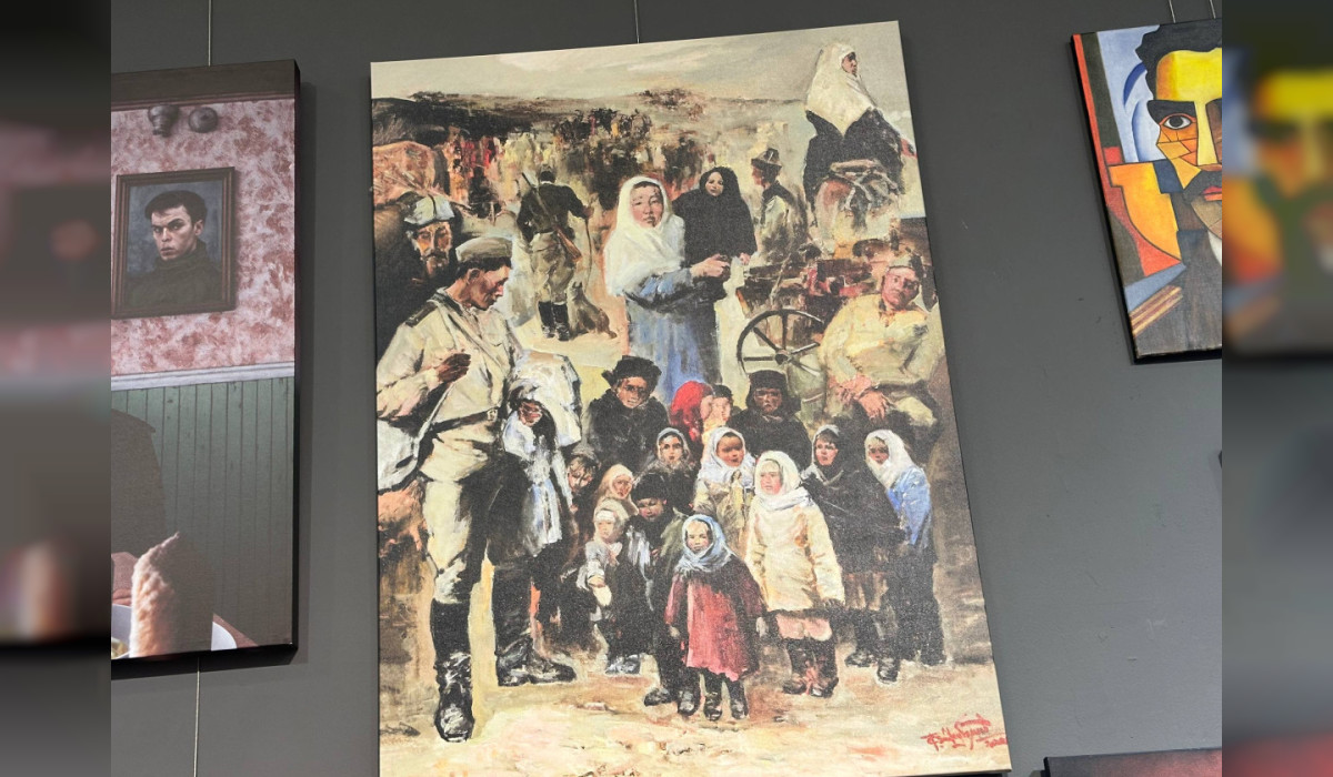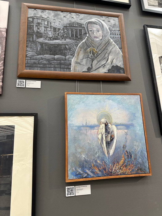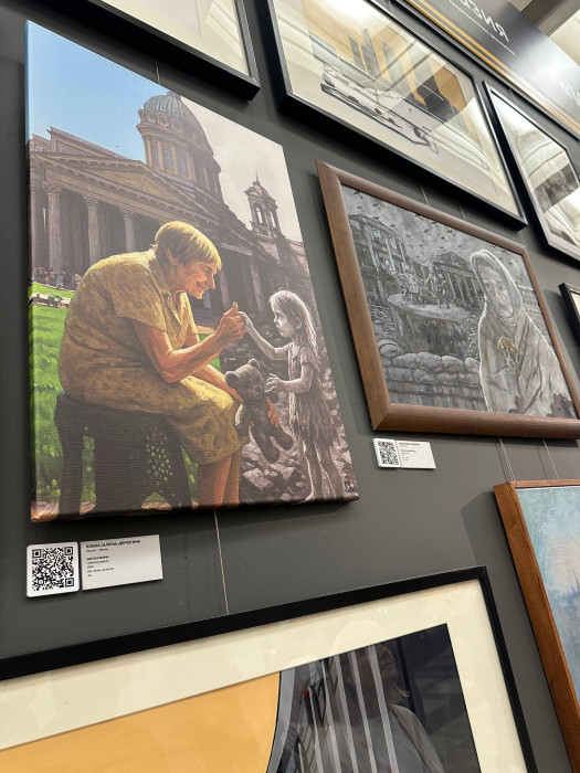 "Кыргызстандан келген сүрөттүн автору - Таалайбек Усубалиев. Бул сүрөт Ленинград блокадасындагы согуштун оор сыноолорунун жаркын элесине арналган. Сүрөттөн келечекти үмүт менен караган жаш балдарды көрүүгө болот. Алардын көздөрүнөн башынан өткөргөн кыйынчылыктардын оордугу, ачуусу сезилет",- дейт көргөзмөнүн волонтеру Анна Булбенко.