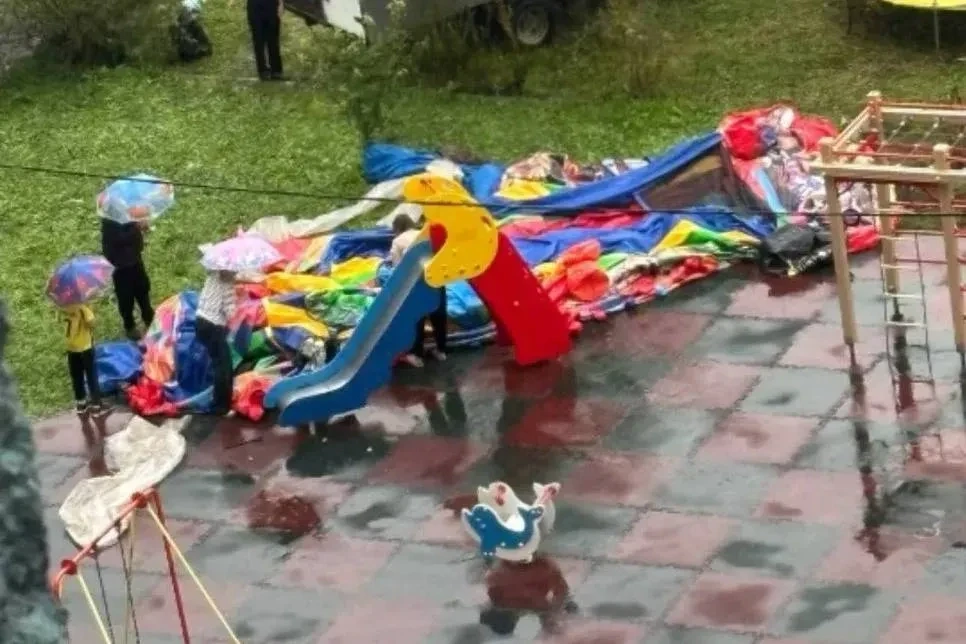 Орусиянын Уфа шаарында катуу шамалдан улам батут кулап кеткен. Анын кесепетинен беш жашар кыз жабыркап, абалы оор. Бул тууралуу чет элдик басылмалар жазышты.