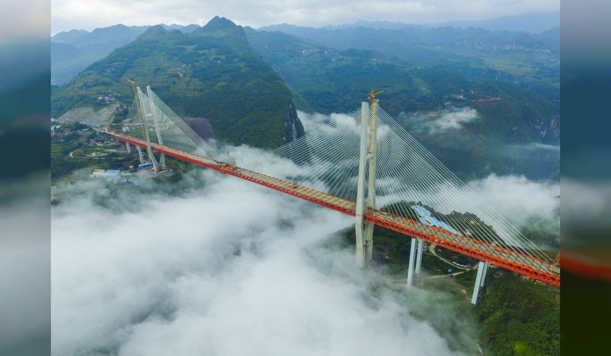 Кытайда 2890 метр узундуктагы көпүрө курулуп бүттү, ал деңиз деңгээлинен 625 метр бийиктикте жайгашкан. Бул тууралуу чет элдик басылмалар жазышты.