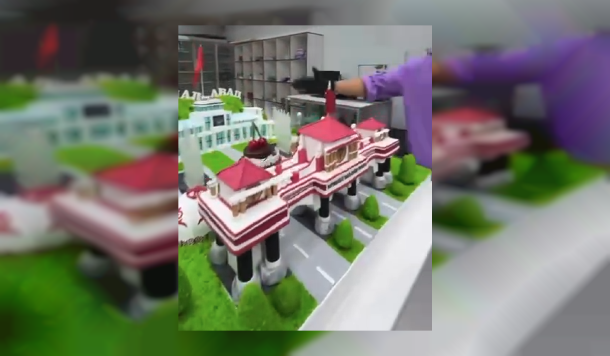 Жалал-Абад шаарындагы негизги имараттардын элеси түшүрүлгөн өзгөчө чоң торт жасалды (видео)