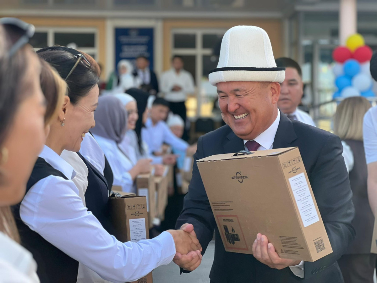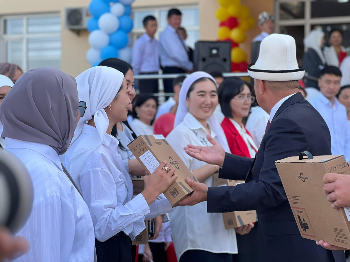 Бул ноутбуктар ар бир мектепке бөлүштүрүлүп, 1-сентябрда мэр Жеңишбек Токторбаев салтанаттуу линейка учурунда мугалимдерге тапшырды.