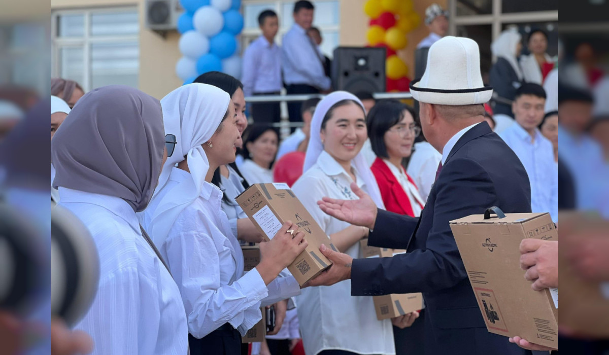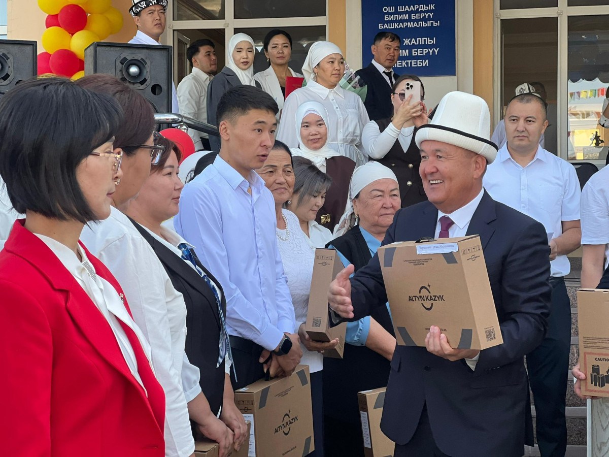 Ош шаарындагы мектептерге президент Садыр Жапаровдун атынан “Алтын казык” программасынын алкагында 865 ноутбук белекке берилди. Бул тууралуу Ош шаардык мэриясы билдирди.