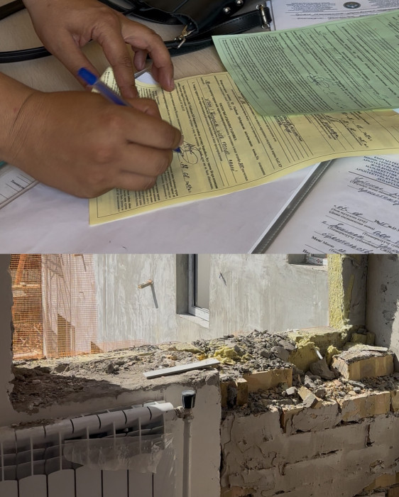 Аталган объектке акт түзүлүп, подряддык уюм “Эльдияр строй” ЖЧКсына сапатсыз тургузулган бөлүктү демонтаждоо, ишти долбоордук чечимдерге жана курулуш нормаларына ылайык келтирүү боюнча эскертүү берилди.
